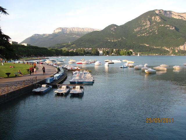 A very short ride started at 9.40am to Annecy but by no means is easy as the terrain is mostly uphill thru the mountain Clergeon at 1025m. The 1st 12 km following the river valley up to Motz and then passing thru the mountain of vel du Fier of D14, we ride thru 2 very short tunnels and some beautiful views of gorges,when reaching the outskirt of Annecy,we mistakenly went into the highway where we were honk by the speeding cars,we quickly turn into the next exit and asked our ways out to the Annecy town centre.This is a very touristic big city with a very beautiful lake of Lac d' Annecy, it will hold the Olumpic game in 2018. We found a cheap campingsite about 2km away from the more expensive lake camp,located on a hill slope for 5.5 euro per pax, surprisingly cheap cos' we heard that it will be doublely more than what we had paid in others campsites.After setting our tents,we went for a short ride thru the town and took some very nice lakeside pictures.